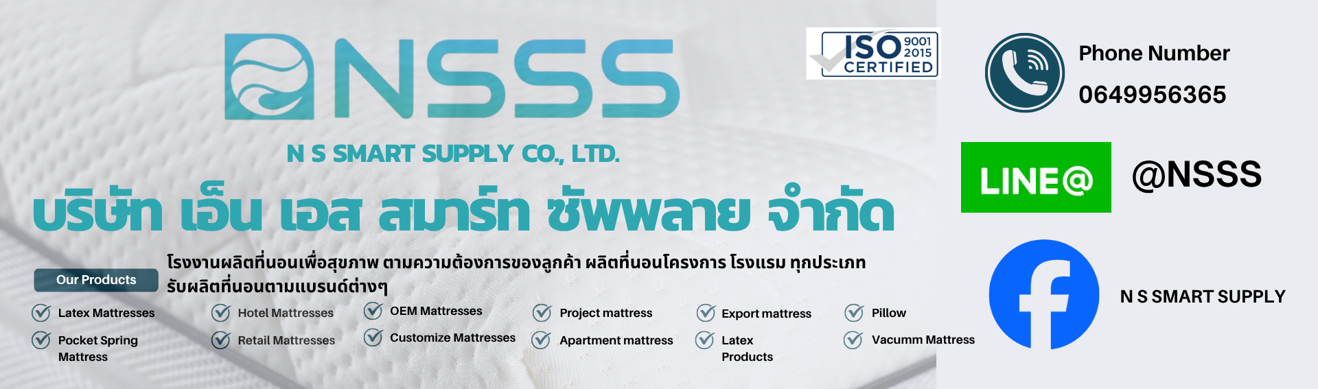 เราเป็นโรงงานผลิตที่นอนครบวงจรมานานหลายสิบปี ผลิตภัณฑ์ที่นอนของโรงงานมีครบวงจรทั้ง ที่นอนยางพารา ที่นอนยางพาราอัด ที่นอนสปริง ที่นอนฟองน้ำ ที่นอนฟองน้ำอัด ที่นอนใยมะพร้าว ที่นอนเมมโมรี่โฟม เตียงนอน ผ้ารองกันเปื้อน หมอน หมอนข้าง