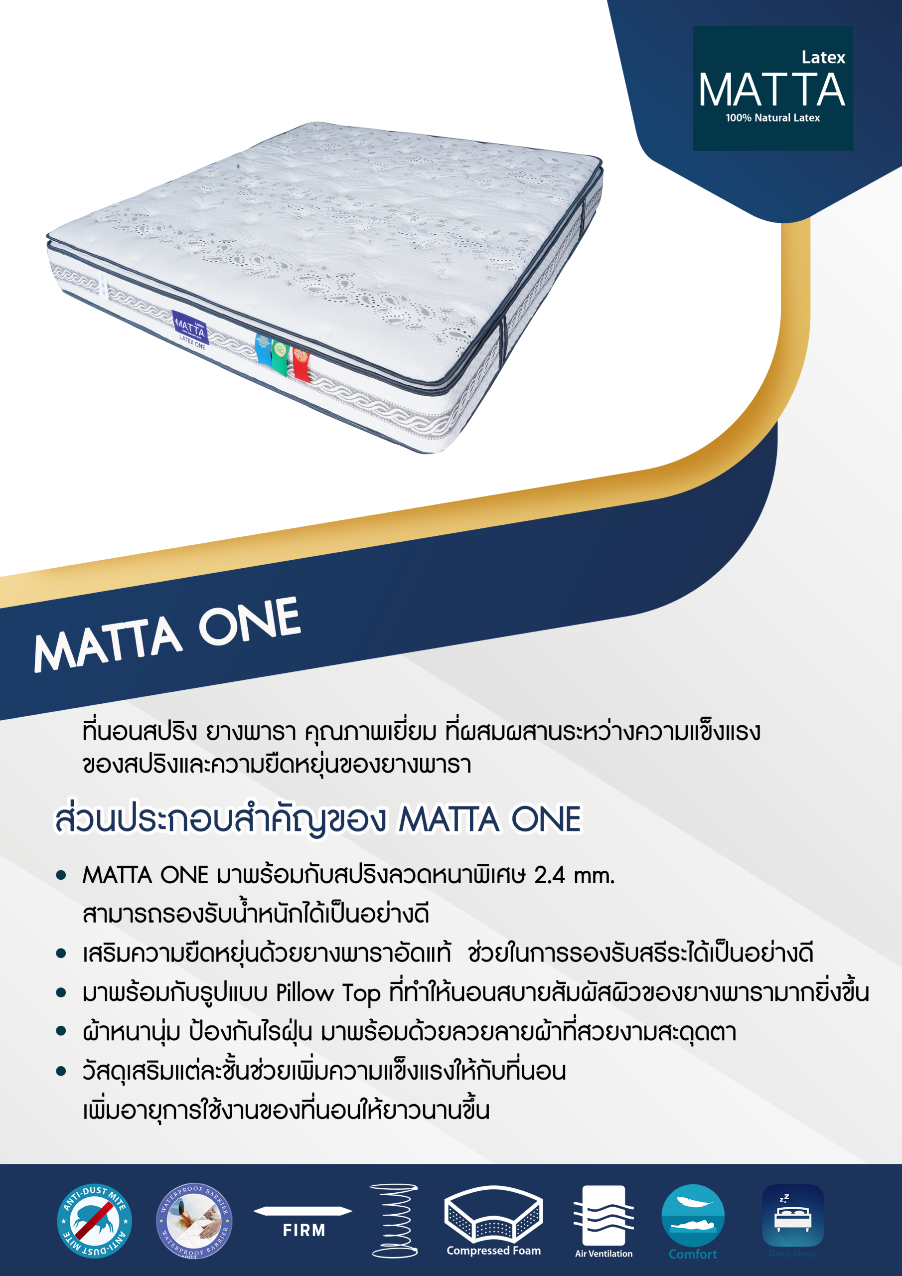 - MATTA ONE มาพร้อมกับสปริงลวดหนาพิเศษ
