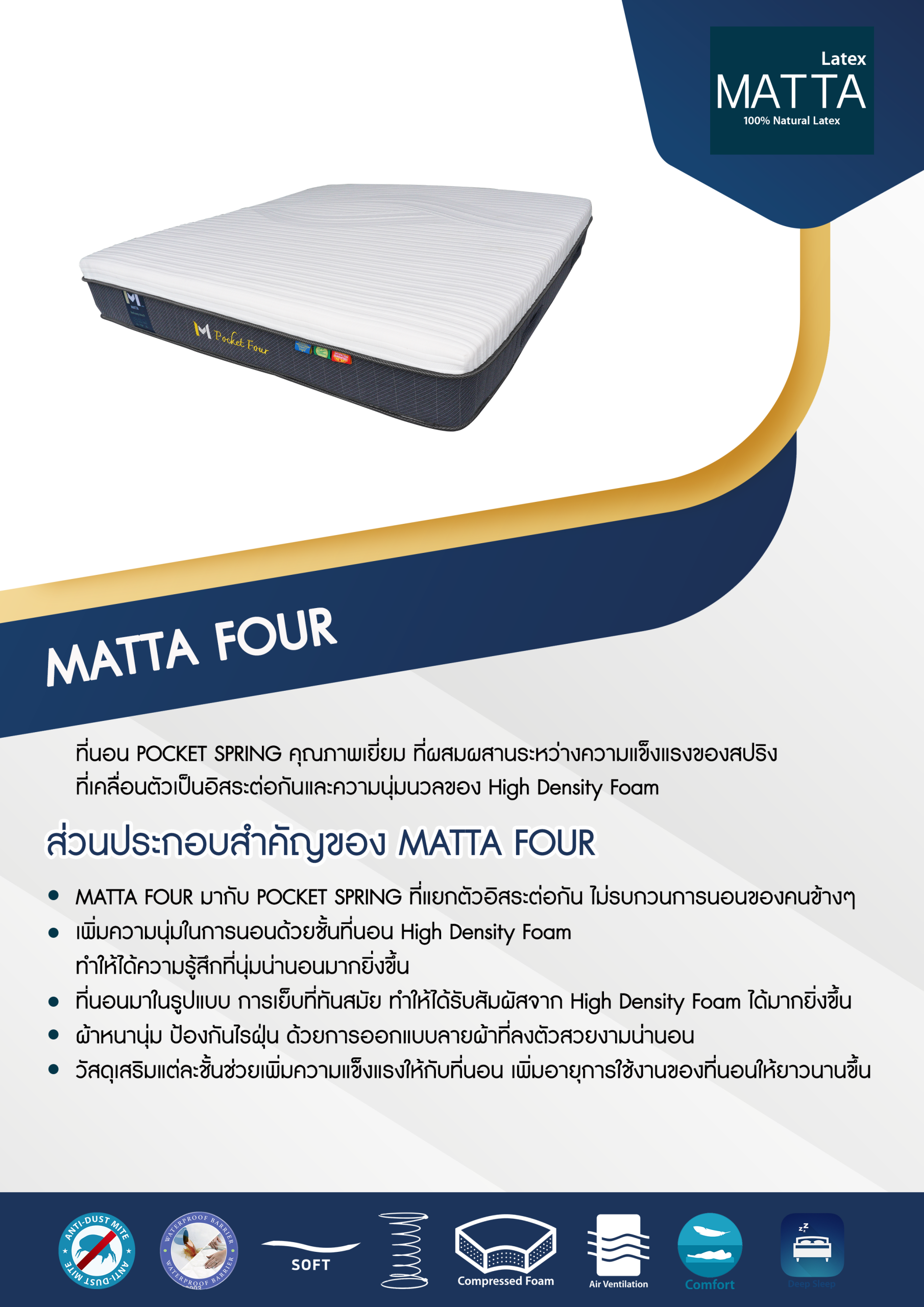 - MATTA FOUR มากับ POCKET SPRING ที่แยกตัวอิสระต่อกัน ไม่รบกวนการนอนของคนข้างๆ