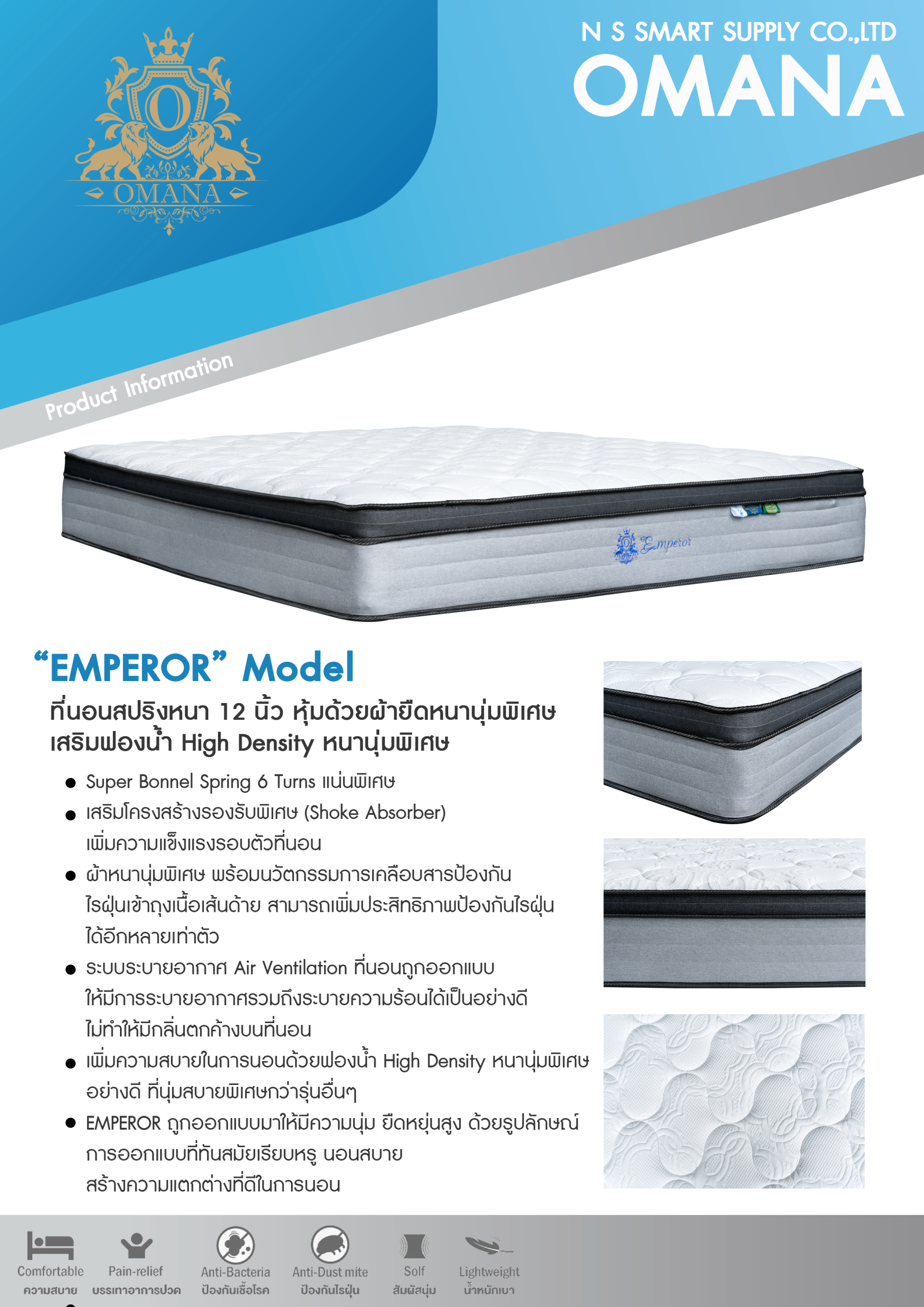 - EMPERO ถูกออกแบบมาให้มีความนุ่ม ยืดหยุ่นสูง ด้วยรูปลักษณการออกแบบที่ทันสมัยเรียบหรู นอนสบายสร้างความแตกต่างที่ดีในการนอน