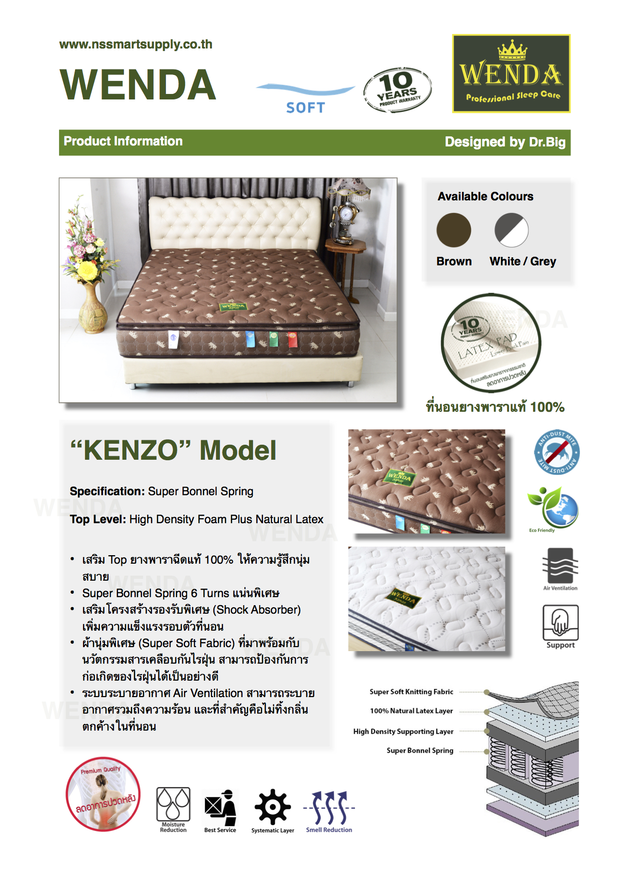 - ผ้านุ่มพิเศษ (Super Soft Fabric) ที่มาพร้อมกับนวัตกรรมสารเคลือบกันไรฝุ่น สามารถป้องกันการก่อเกิดของไรฝันได้เป็นอย่างดี